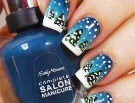 Если есть небольшой опыт рисования лаками, то можно создать настоящие картины из заснеженных елей и сугробов. Такой новогодний дизайн ногтей можно по праву считать настоящим произведением искусства и он непременно станет украшением любого образа, особенно если цветовая гамма сочетается с нарядом.